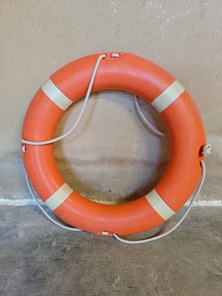 Salvavidas de plástico duro. 75 cms de diametro exterior y 46 cms de interior. Dispongo de 2. Uno de ellos tiene una pequeña grieta que no lo hace apto para usar en aguas. Ideal como decoración. No hago envíos, solo recogida en domicilio. El precio es por unidad.