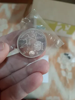 Moneda conmemorativa de España del año 2010. Se encuentra en su embalaje original sin abrir. Perfecta para coleccionistas. - Diseño con los perfiles de Juan Carlos I y Sofía. - Inscripción ESPAÑA 2010 en el borde, monera conmemorativa del mundial de fútbol.