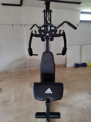 Me gustaría vender esta máquina multifunción Adidas, ideal para entrenar en casa. - Diseño robusto y estable. - Incluye pesas. - Perfecto estado de conservación. - Ideal para múltiples ejercicios.