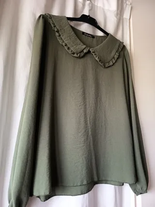 Blusa verde mujer cuello Peter Pan