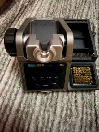 Estación de soldadura Sugon T21 con función ESD Safe. Diseñada para un trabajo preciso y seguro. - Modelo: T21 - Certificación: ESD Safe - Incluye soporte para soldador y esponja limpiadora. Usada solo un par de veces.