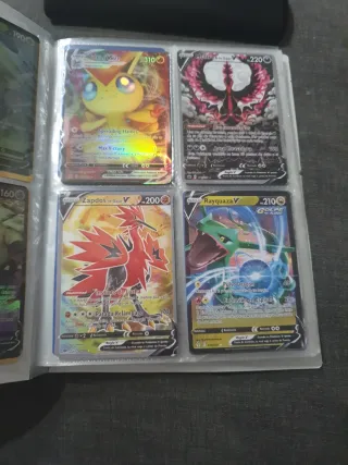 Colección de cartas Pokémon. - Carta Victini VMAX - Carta Moltres V - Carta Zapdos V - Carta Rayquaza V