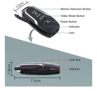 Discreta cámara oculta con forma de llave de coche. 1080P con grabación de vídeo y Audio, 6 Horas de duración de la batería. Envío sólo por inpost .