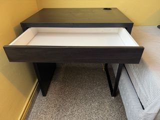 Escritorio de diseño moderno. Ideal para espacios de estudio u oficina. Medidas en la tercera foro. - Tablero resistente. - Cajón integrado. - Patas metálicas. No se ha llegado a usar.