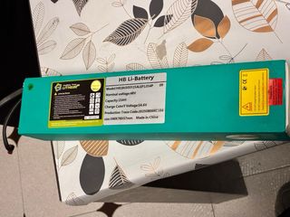 Batería de litio HB Li-Battery. - Voltaje nominal: 48V - Capacidad: 15AH - Voltaje de corte de carga: 54.6V - Dimensiones: 340x78x57mm - Fabricado en China