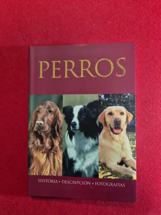 Libro sobre perros que cubre su historia, descripción y fotografías. - Portada con imágenes de diferentes razas de perros. - Contenido dividido en historia, descripción y fotografías.