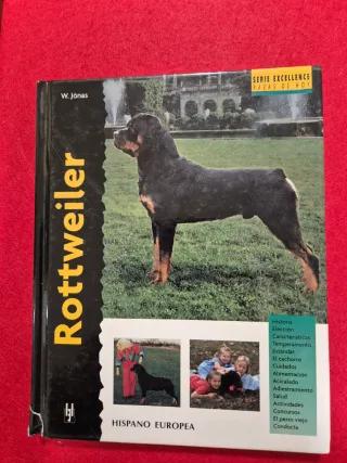 Libro sobre la raza Rottweiler, parte de la Serie Excellence. - Autor: W. Jonas - Editorial: Hispano Europea - Temas cubiertos: Historia, elección, características, temperamento, estándar, alimentación, adiestramiento, salud, actividades, concursos y conducta.