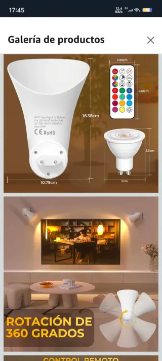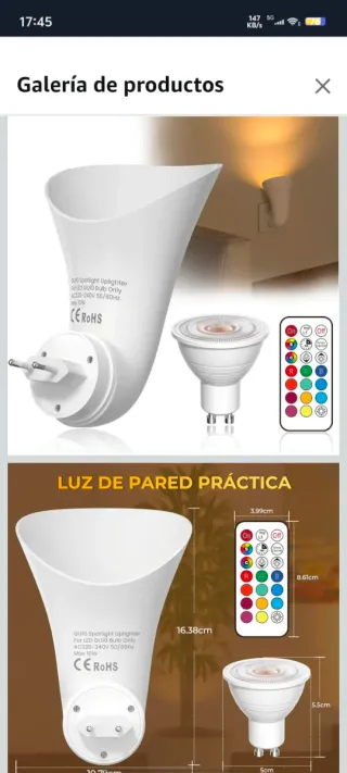Lámpara Enchufe LED GU10 RGB + Mando