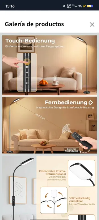 Lámpara de pie LED con diseño moderno y funcional. Cuenta con un brazo flexible para dirigir la luz fácilmente. - Altura de 1859 mm. - Diseño mejorado para mayor cobertura de luz. - Control remoto incluido para ajustar la intensidad y el color de la luz.