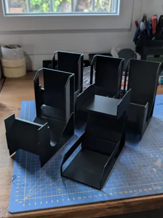 Lote de 5 soportes para mangas en dos alturas. Se puede colocar en dos posiciones distintas, quedando la fila de arriba más alta o más baja. MEDIDA: 9x15x17cm o 9x17x15cm - Color a elegir blanco, gris o negro. - Consultar otros colores. - Pedir otras cantidades si se desea El plazo de impresión puede requerir una semana de tiempo