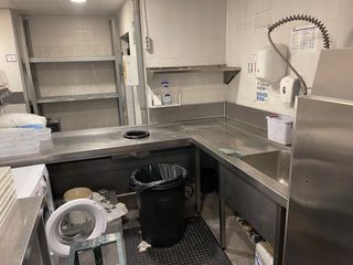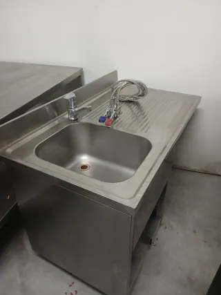 Mesa de trabajo esquinera en L fabricada en acero inoxidable, ideal para cocinas o talleres. - Superficie amplia y resistente. - Incorpora un fregadero (pica) integrado. - Diseño funcional para optimizar el espacio. - medi 280 x 220 x 80 WhatsApp 618405200
