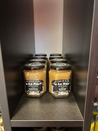 Tarros de miel artesana de Ca la Núria. 5 variedades. También tengo mermeladas artesanas de Mas La Riera, 8 variedades. Pregúntame.
