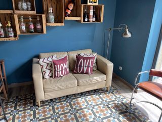 Cama de matrimonio de 1,50, canapé con 2 mesitas