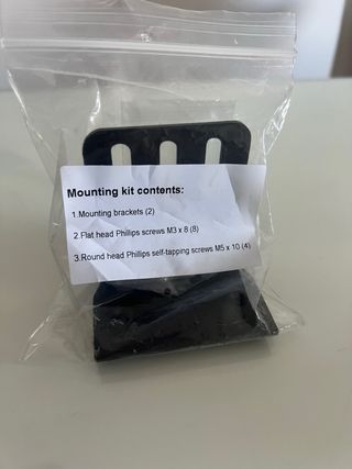 Kit de montaje para rack con los siguientes componentes: - 2 soportes de montaje. - 8 tornillos Phillips de cabeza plana M3 x 8. - 4 tornillos Phillips autorroscantes de cabeza redonda M5 x 10.