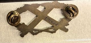 Medalla con diseño de espadas cruzadas y corona de laurel. - Acabado en bronce. - Detalle de espadas y hojas. - Cierre de pin.