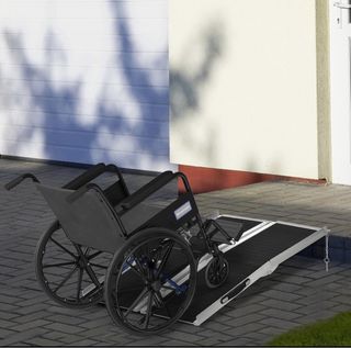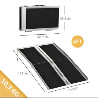 Rampa portátil y plegable, ideal para facilitar el acceso con sillas de ruedas. - Diseño plegable para fácil almacenamiento y transporte. - Superficie antideslizante para mayor seguridad. - Construcción robusta y duradera. Ref: 713-022v00bk