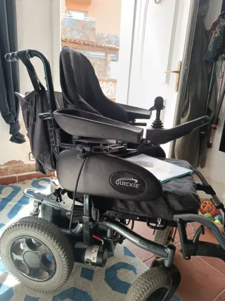 Silla de ruedas eléctrica marca Quickie, modelo Tango. Diseñada para ofrecer comodidad y movilidad. En excelentes condiciones, respaldo ortopédico, reposabrazos y cojín con fundas nuevas. Joystick ergonómico para un fácil control. Cargador incluido. Motor muy potente y alta velocidad. Excelente silla. Cualquier duda o pregunta, escríbeme. Unos €3600+ nuevo. - Asiento y respaldo en tejido negro. - Reposabrazos ajustables. - Joystick de control. - Ruedas traseras grandes y ruedas delanteras giratorias.