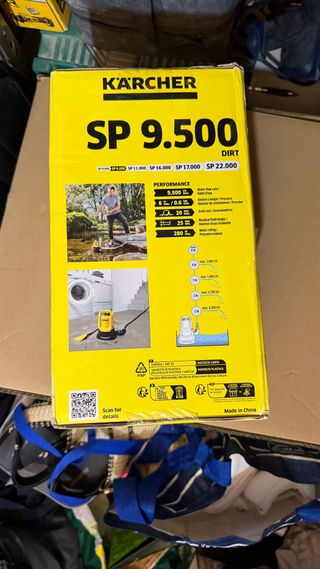 Bomba de agua Kärcher SP 9.500 DIRT, diseñada y fabricada en Alemania. - Protección del motor con tecnología cerámica. - Accesorios incluidos en la caja. - Función de flotador. - Asa de transporte.
