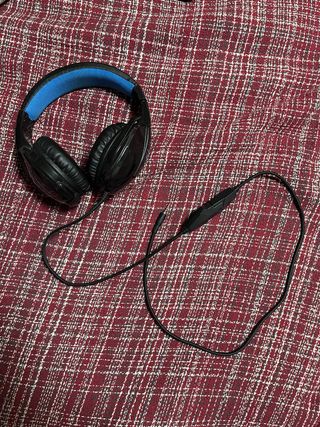 Auriculares negros con detalles en azul. - Diadema acolchada. - Diseño ergonómico. - Cable con control.