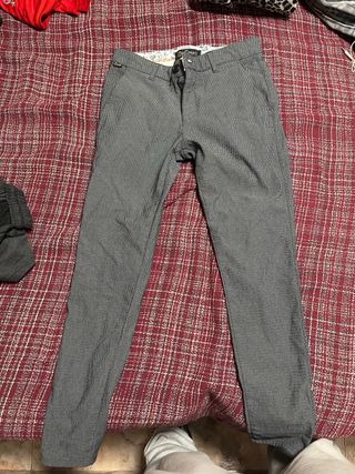 Pantalones tejanos de la marca Zara en color gris. - Diseño con microestampado. - Cintura con trabillas. - Cierre de cremallera y botón.