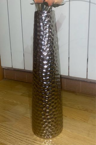 Jarrón alto plateado con textura