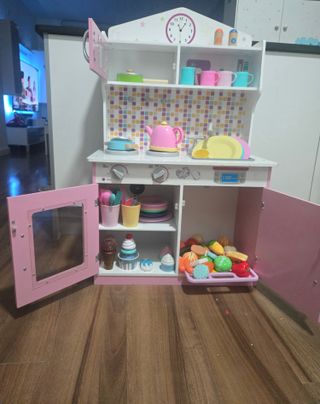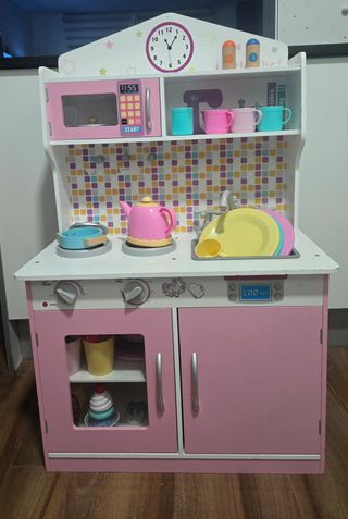 Divertida cocina de juguete en color rosa, ideal para horas de juego. - Incluye varios accesorios para completar la experiencia. - Diseño colorido y atractivo. - Fabricada en madera resistente.