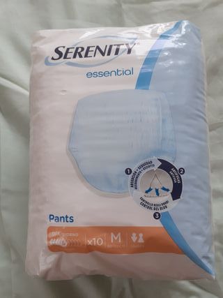 Paquete de bragas Serenity Essential. - Talla M. - Incluye 10 unidades. - Cintura de 80-120 cm. - Diseño unisex.