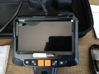 Endoscopio profesional sin usar, listo para su primer uso. - Incluye maletín de transporte. - Pantalla integrada. - Cable flexible con cámara.
