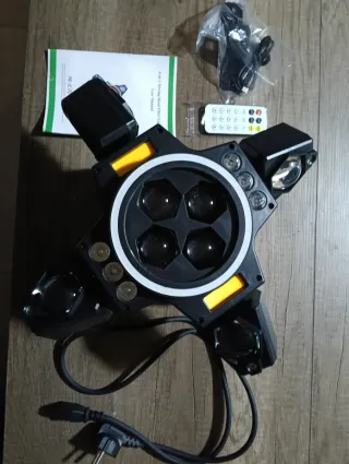Foco de luz de colores profesional, ideal para eventos y espectáculos. Se encuentra en estado nuevo. - Diseño compacto y versátil. - Incluye control remoto para fácil manejo.