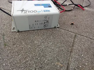 Cargador GNB modelo 2100SP con cables de conexión. - Diseño compacto y blanco. - Indicadores LED en la parte superior. - Cables de alimentación y pinzas incluidos. No ago en envíos venta en persona