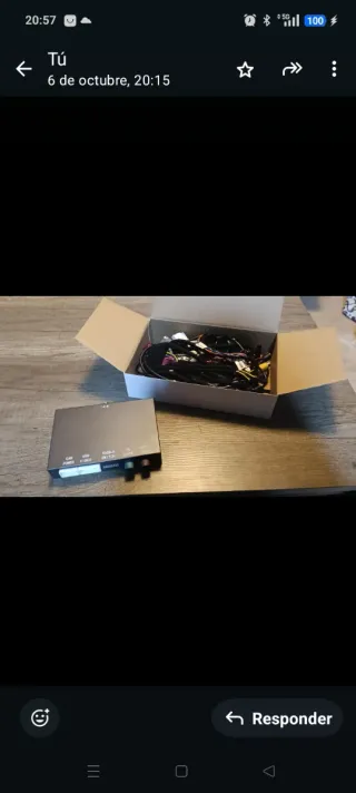 Sistema Car Play sin estrenar, tal como se ve en la caja original. - Incluye todos los cables y accesorios necesarios. - Dispositivo compacto y moderno.