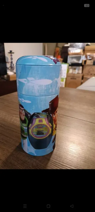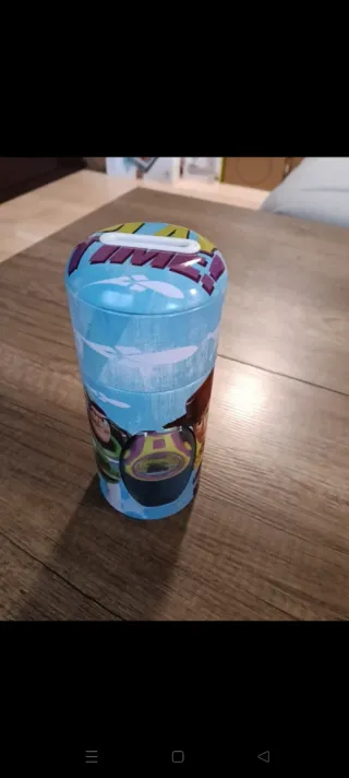 Original hucha con forma de cilindro decorada con personajes de Toy Story. Incluye un reloj. - Diseño de Buzz Lightyear y Woody. - Tapa superior. - Ideal para coleccionistas.