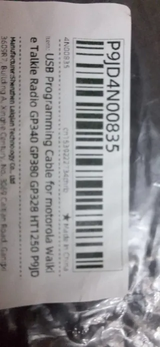 Cable de programación USB para radios Motorola. - Compatible con modelos GP340, GP380, GP328, HT1250 y P9JD. - Fabricado por Shenzhen Lalqlan Technology Co., Ltd. - Hecho en China.