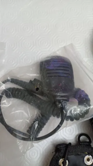 Motorola GP 338 Plus UHF. Incluye el cargador y el cable de alimentación. Funda sin estrenar, dos micrófonos, soporte, cable programación sin software, no funciona la luz de la pantalla.