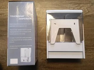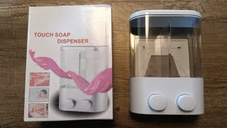 Dispensador de jabón con doble compartimento. Tengo varias unidades disponibles. - Diseño transparente con base y tapa blanca. - Dos botones dispensadores. - Ideal para champú, acondicionador o gel de ducha.