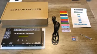 Controlador profesional de luces LED Art-Net de 16 canales. Incluye caja original, cable de alimentación, tarjeta SD de 4GB, etiquetas de salida y manual de instrucciones. Cuesta 275€ - Modelo: LED 16CH ART-NET CONTROLLER - Conexiones: Ethernet, DMX IN/OUT, SD CARD - Alimentación: AC 110-240V