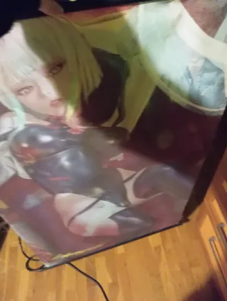 Sudadera blanca con un llamativo estampado de anime en la parte delantera. El diseño presenta una figura femenina de estilo manga con cabello largo y oscuro y un texto estilizado debajo. - Estampado gráfico de anime. - Diseño de cuello redondo.