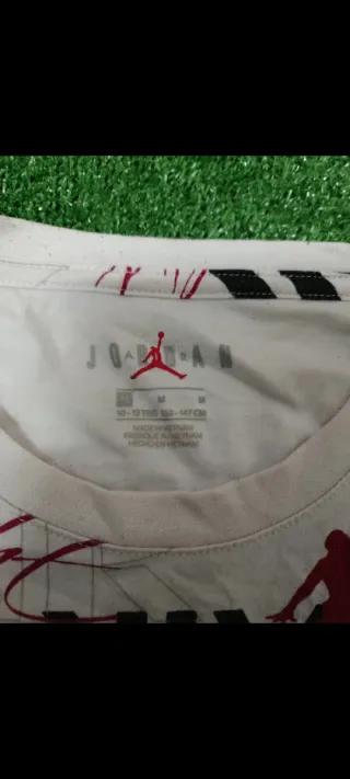 Camiseta blanca con estampado integral de Air y Flight junto con el logo de Jordan. - Diseño de manga corta. - Estampado repetido. - Logo de Jordan en rojo y negro.