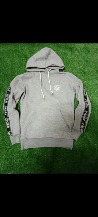 Sudadera gris con capucha y cordones blancos. Presenta el logo de SikSilk en el pecho y detalles de la marca en las mangas. - Color: Gris - Logo SikSilk en pecho - Cinta con logo SikSilk en mangas