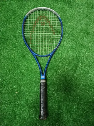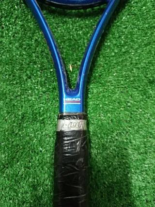 Raqueta de tenis de la marca HEAD en color azul. - Marco de color azul con detalles plateados. - Cuerdas blancas. - Empuñadura negra.