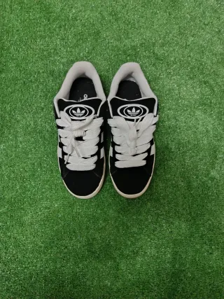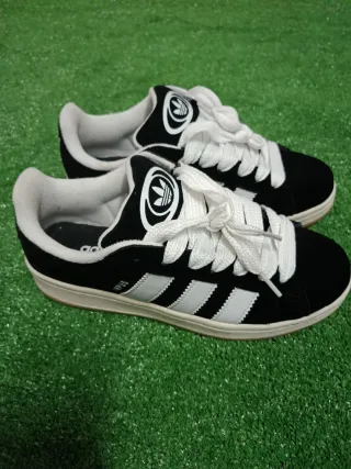 Zapatillas deportivas Adidas de color negro con detalles blancos. - Cierre con cordones blancos. - Logo de Adidas en la lengüeta y el lateral. - Suela de goma blanca.