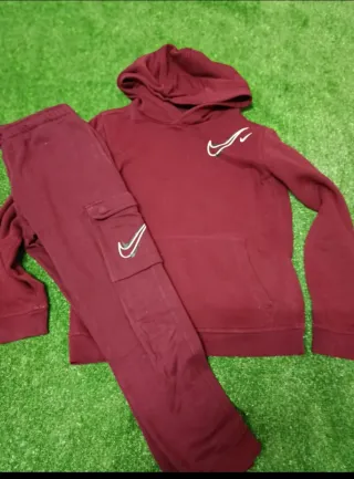 Conjunto deportivo de Nike en color granate. Incluye sudadera con capucha y pantalón. - Sudadera con capucha y bolsillo. - Pantalón con bolsillo cargo. - Logo de Nike en ambas prendas.