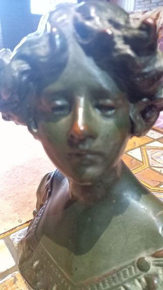 Busto antiguo con firma,posiblemente bronce ó similar metal..de origen Francés,mide 16x8...la altura es de 16 cms....ésta pieza no se envía por Wallapop,se envía por correo certificado previo pago....No sé negocia él precio. - Diseño detallado. - Material de bronce.