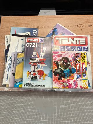 Lote de 32 manuales de instrucciones de Tente. 5 euros cada una - Incluye instrucciones para diferentes sets de Tente. - Modelos como el 0721 (Astronave y Torre de Lanzamiento) y el 0651/0652 (Explorador Espacial). - Variedad de temas espaciales y de construcción.