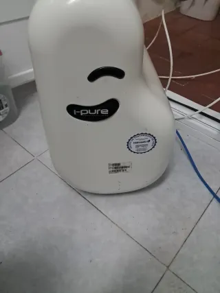 Equipo de tratamiento de agua de la marca i-pure. - Diseño moderno en color blanco y negro. - Fabricado en plástico resistente.