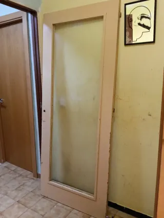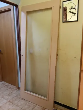 Puerta de interior con panel de cristal. - Marco de madera. - Panel de cristal translúcido.