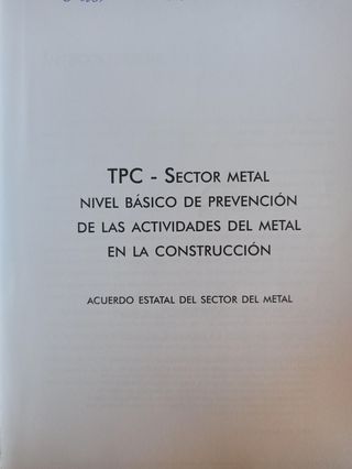 PRL sector Metal. Nivel básico de prevención de las actividades del metal en la construcción. Tiene unos veinte años con mi nombre escrito a bolígrafo en la primera página pero no tiene anotaciones ni daños en el interior. Envío por GLS o Seur. No por correos