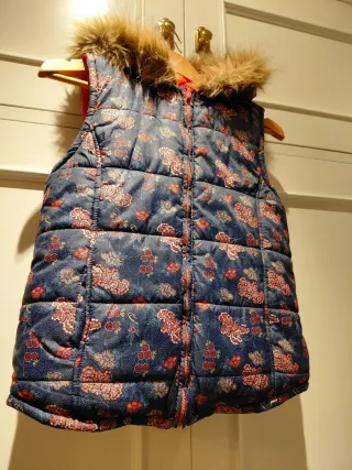 Chaqueta sin mangas reversible para niña, talla 13-14 años. Ideal para añadir una capa extra de abrigo. - Diseño estampado floral. - Capucha con pelo. - Cierre de cremallera.
