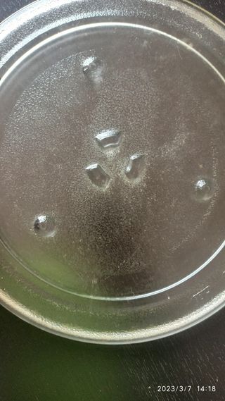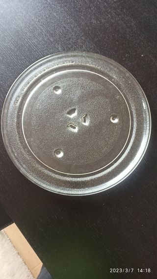 Plato de vidrio giratorio para microondas y su base. 29cm diámetro.