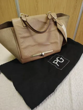 Bolso de mano y hombro de la marca PG. - Material exterior: piel y ante. - Color: beige. - Cierre metálico. - Incluye funda guardapolvo.